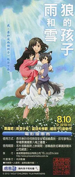 只要將此圖檔彩色列印下來,到全台《狼的孩子雨與雪》上映戲院購票,